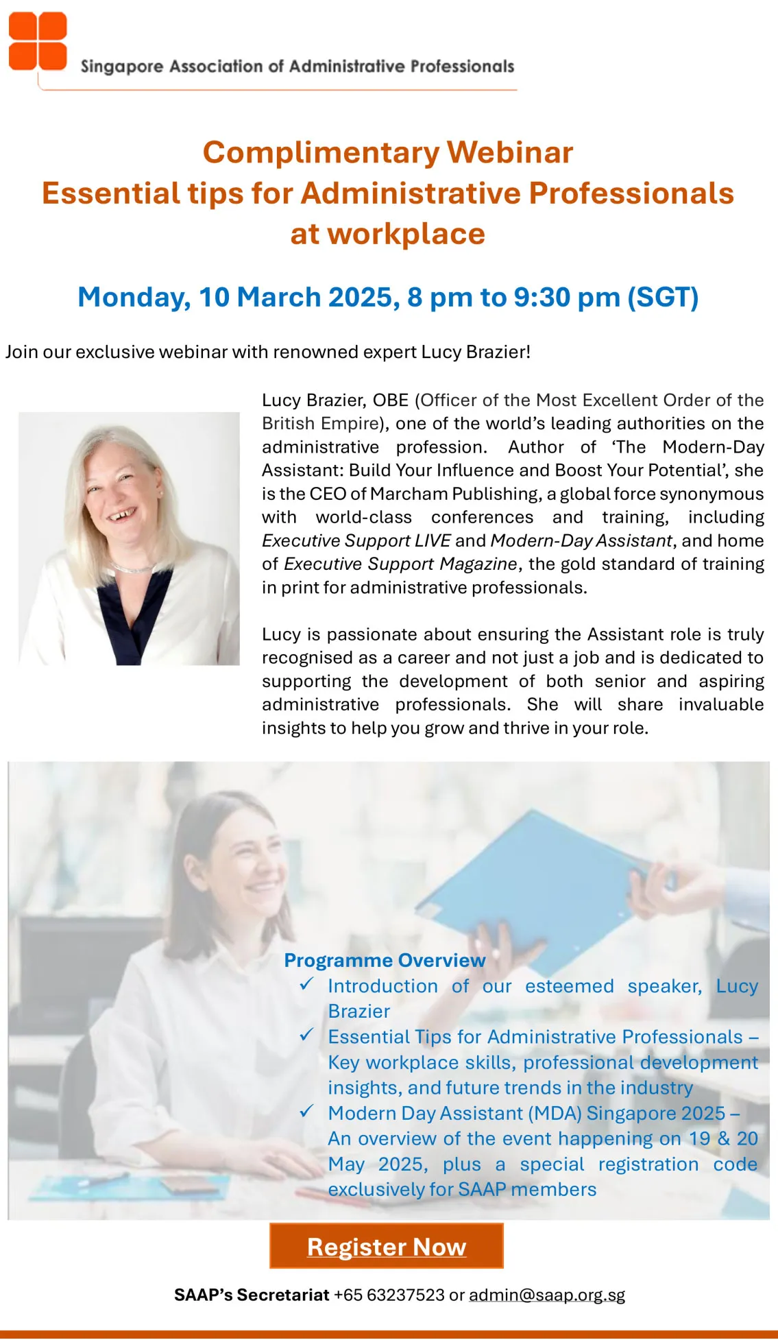 • Special preview of Modern Day Assistant (MDA) Singapore 2025 (19 & 20 May), plus an exclusive registration code for SAAP members