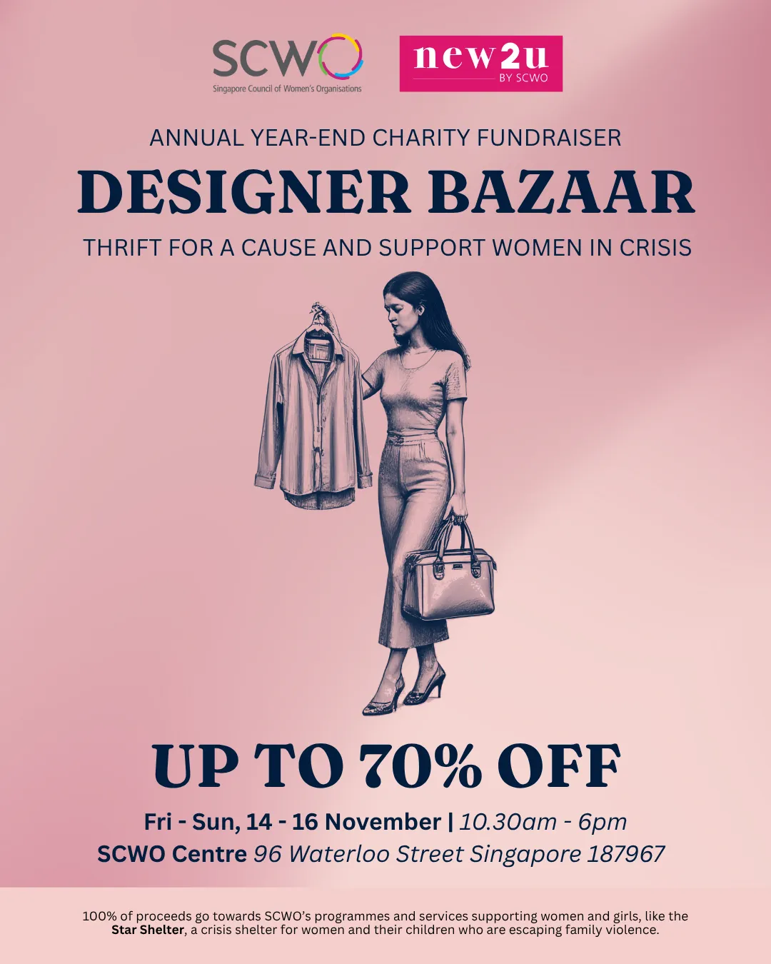 The New2U by SCWO Charity Fundraiser Designer Bazaar returns from 14 to 16 November 2025, bringing you fashion and lifestyle deals that make a difference. Discover great finds at up to 70% off, and support programmes that empower women and help families rebuild their lives.