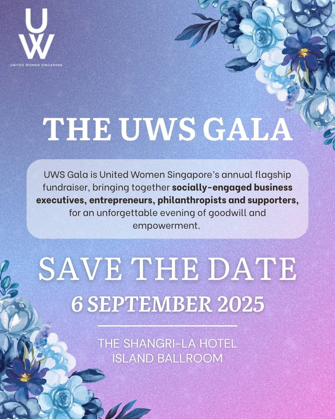 Our annual fundraiser, the UWS Gala, as we come together in support of women empowerment towards a gender equal society.