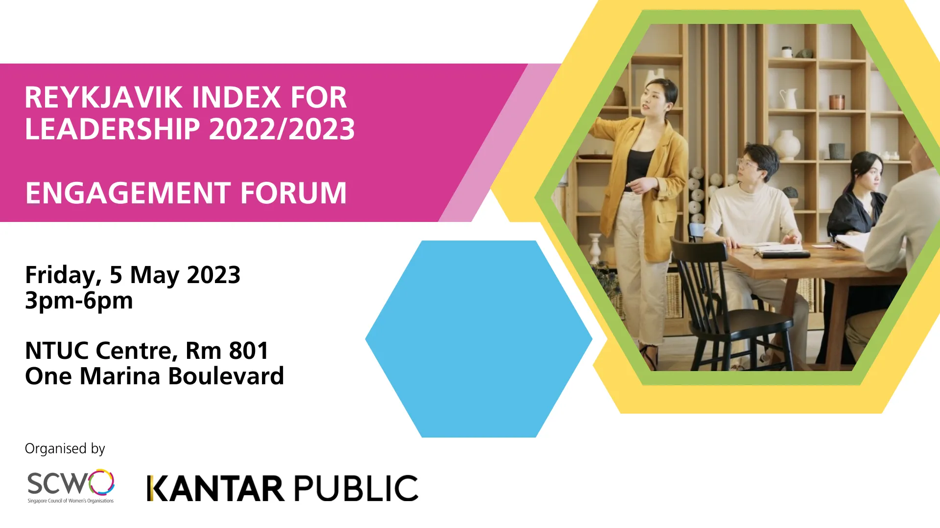 Singapore Council of Women's Organisations (SCWO), together with global policy advisory firm Kantar Public, invites you to attend this engagement forum and workshop to co-create and deliberate on interventions that can build a more gender-inclusive society in Singapore.