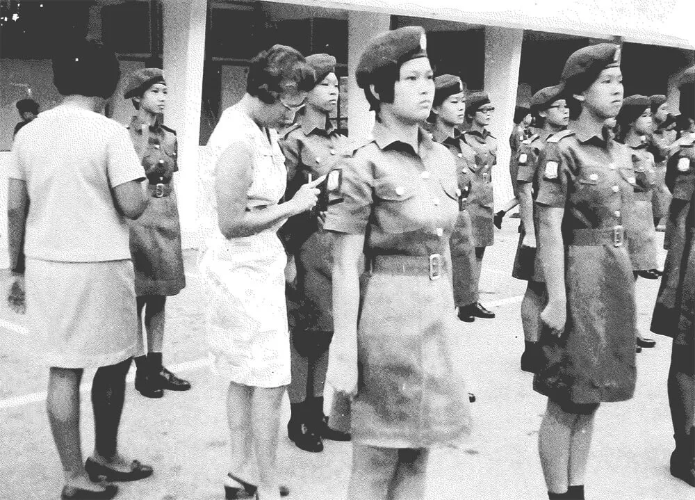 In the People’s Defence Force, Evelyn held the rank of Major commanding the Singapore Women Auxiliary Corps, a post she held until she took over command of the girls’ section of the National Cadet Corps.