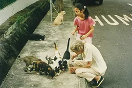 Soon after arriving in Singapore, Marjorie noticed the plight of stray animals. Together with another expatriate lady, she began rescuing cats from Singapore’s streets. There were few veterinarians in Singapore in those days, so Marjorie would rush injured cats in her car to the sole government-run Animal Infirmary in Kampong Java.