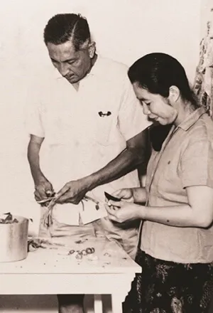 Despite the lack of formaI education, Noor Aishah was naturally curious and had a voracious appetite for learning. She picked up cooking and sewing by watching her mother and other women in her village. She also helped her mother make and sell nasi lemak.
